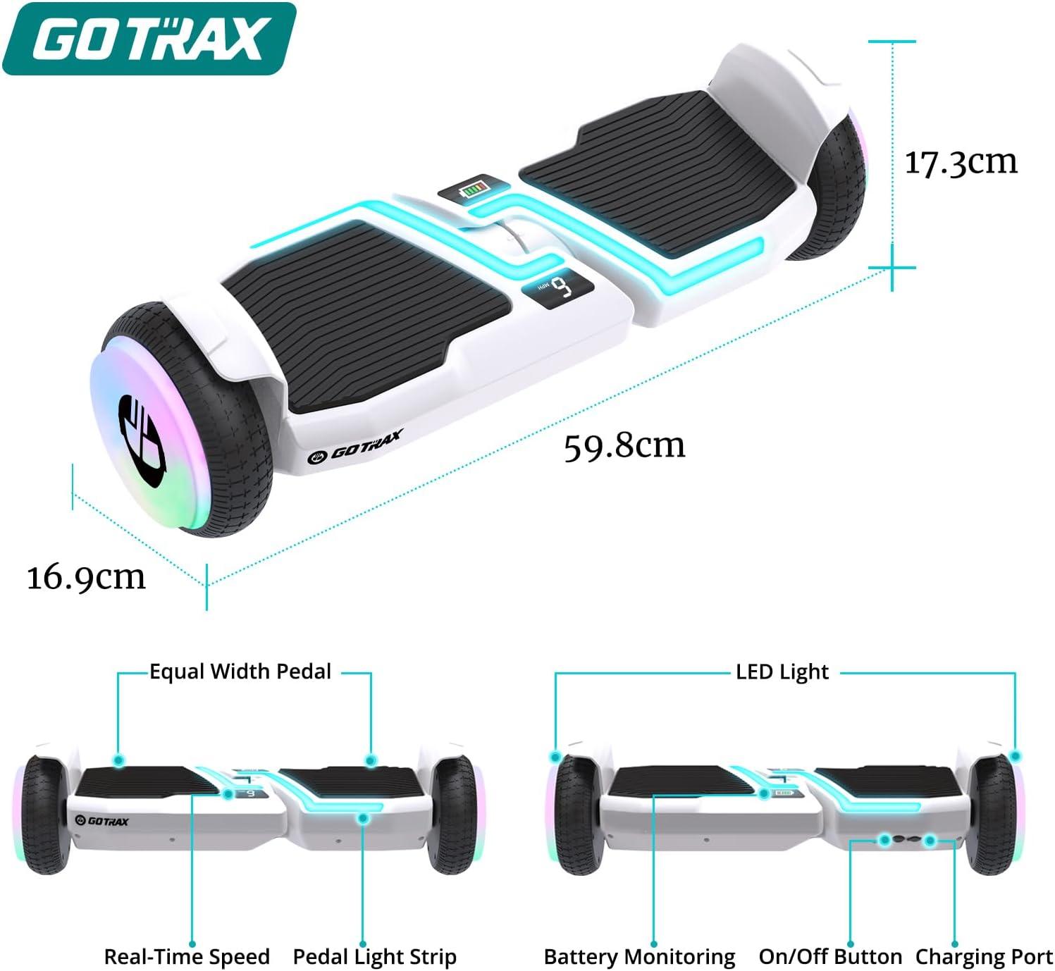 Gotrax MARS MAX Hoverboard with 6.5″ Wheels & Music Speaker, 6 Miles Range & Top 6.2mph by Dual 250W Motor, Speed & Battery LED Display, UL2272 Certified Self Balancing Scooters for Kids(Black)(200W 65.52Wh White)