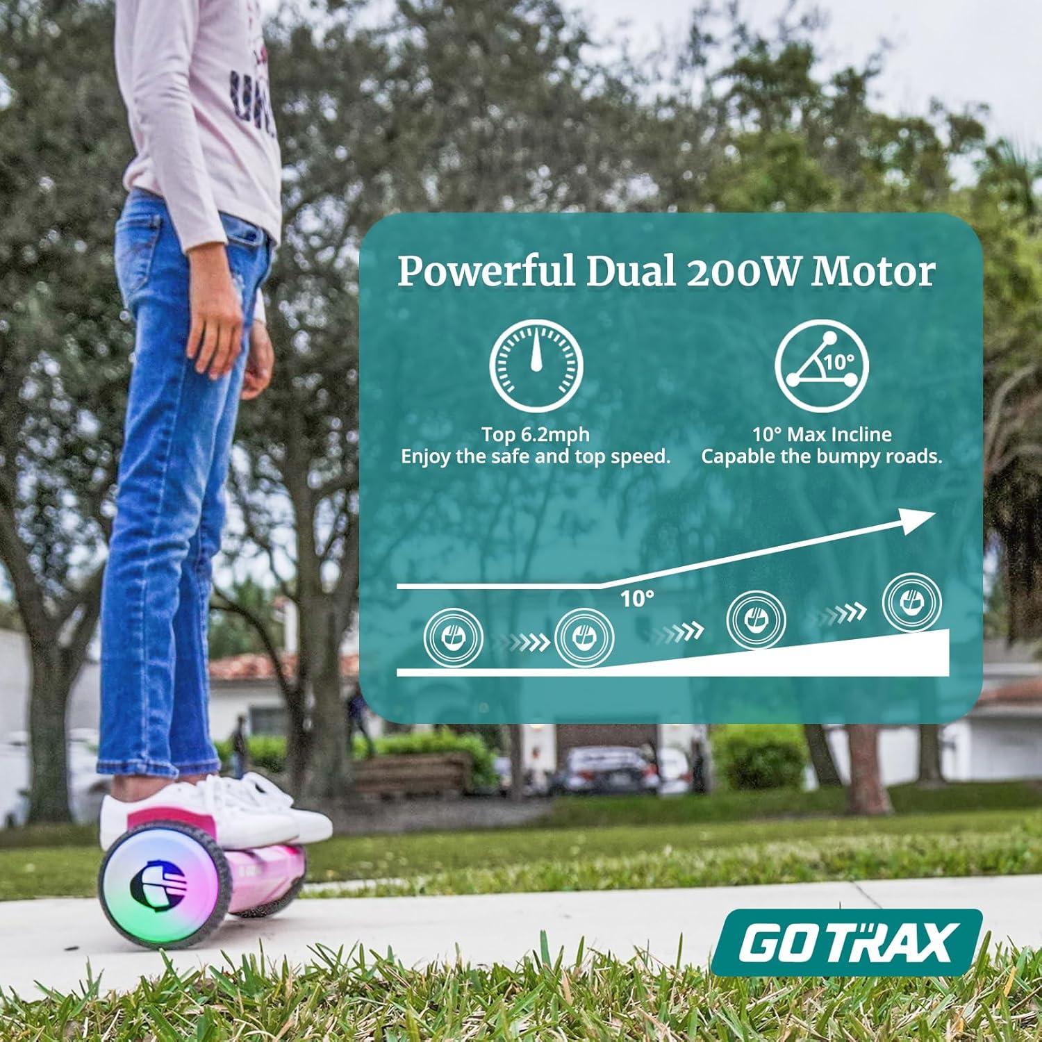 Gotrax MARS MAX Hoverboard with 6.5″ Wheels & Music Speaker, 6 Miles Range & Top 6.2mph by Dual 250W Motor, Speed & Battery LED Display, UL2272 Certified Self Balancing Scooters for Kids(Black)(200W 65.52Wh Pink)